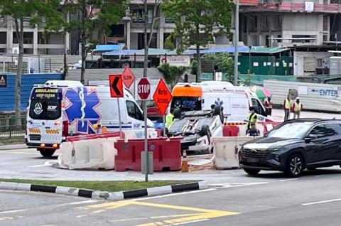两车相撞致一车翻覆 两驾驶员送院